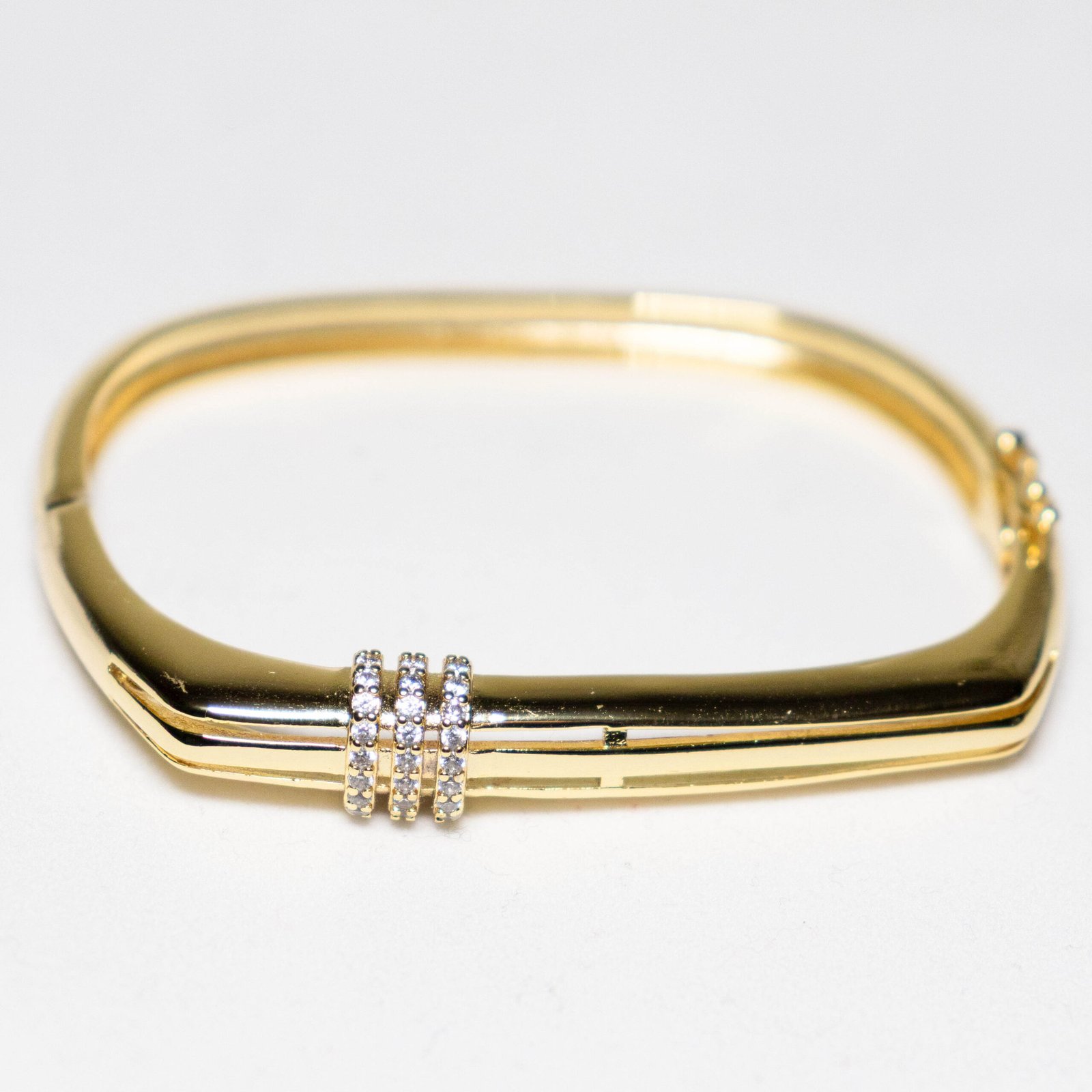 3 Sıra Taşlı Altın Renk Kaplama Kelepçe Çelik Bileklik