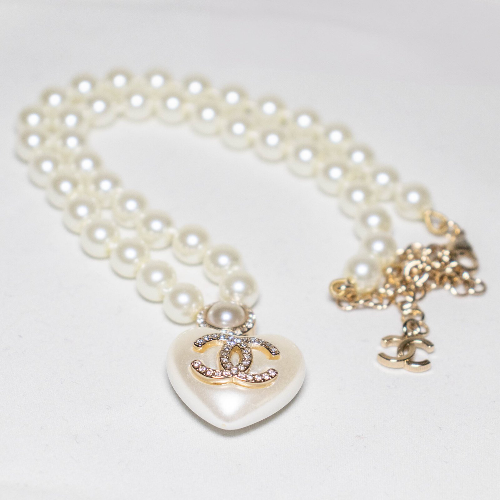 Altın Renk Kaplama Zirkon Taşlı Kalpli İnci Kolye