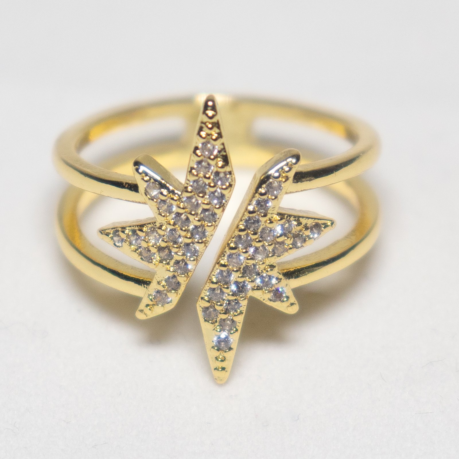 Altın Renk Kaplama Zirkon Taşlı Yaprak Yüzük