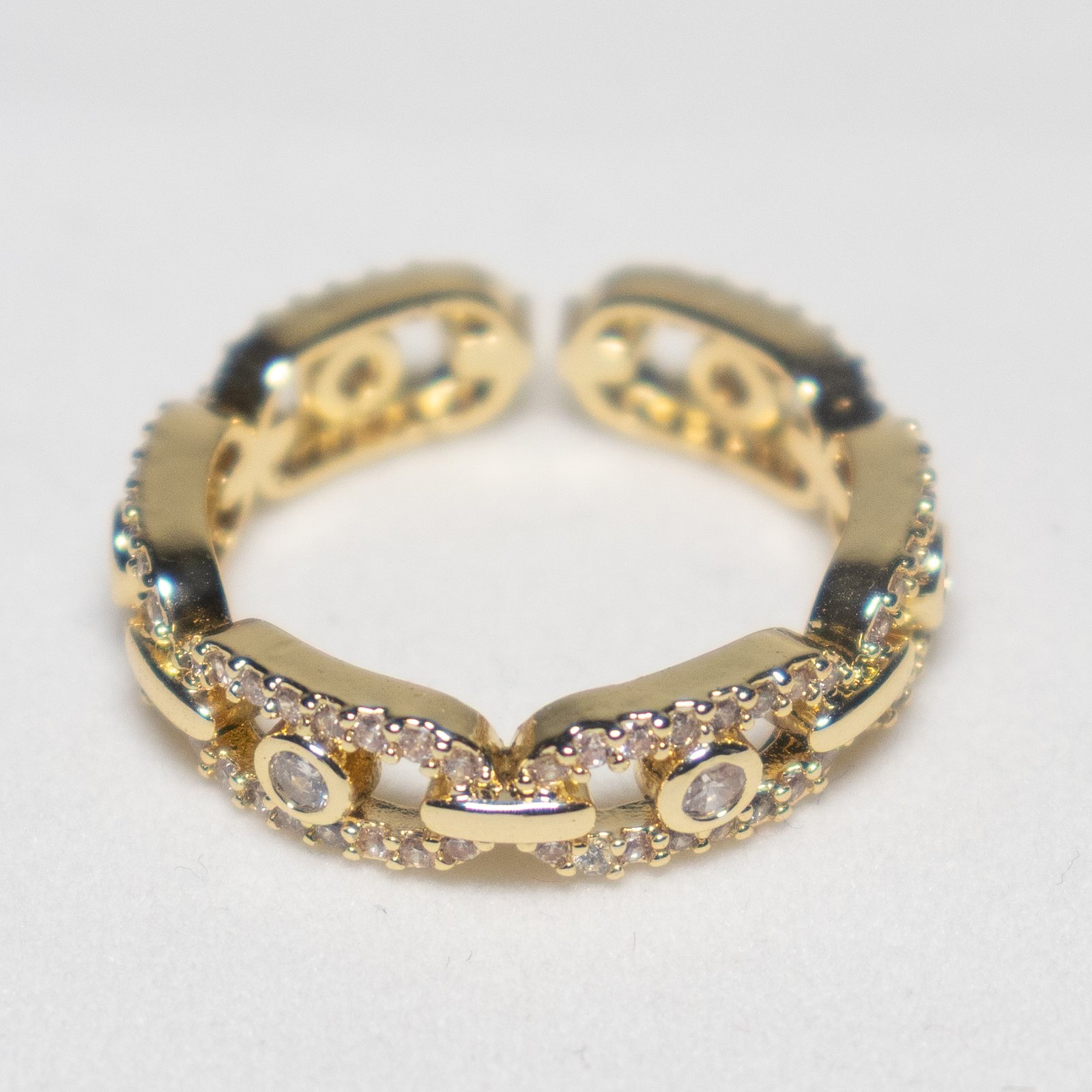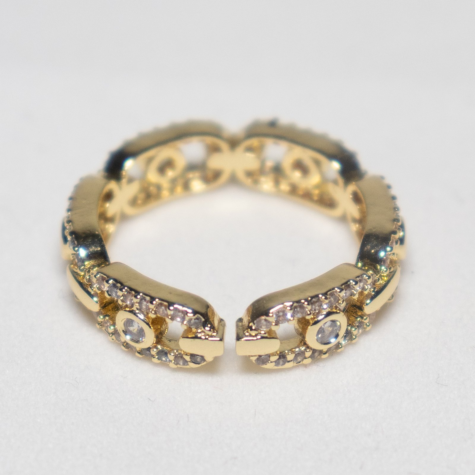 Altın Renk Kaplama Zirkon Taşlı Zincir Yüzük