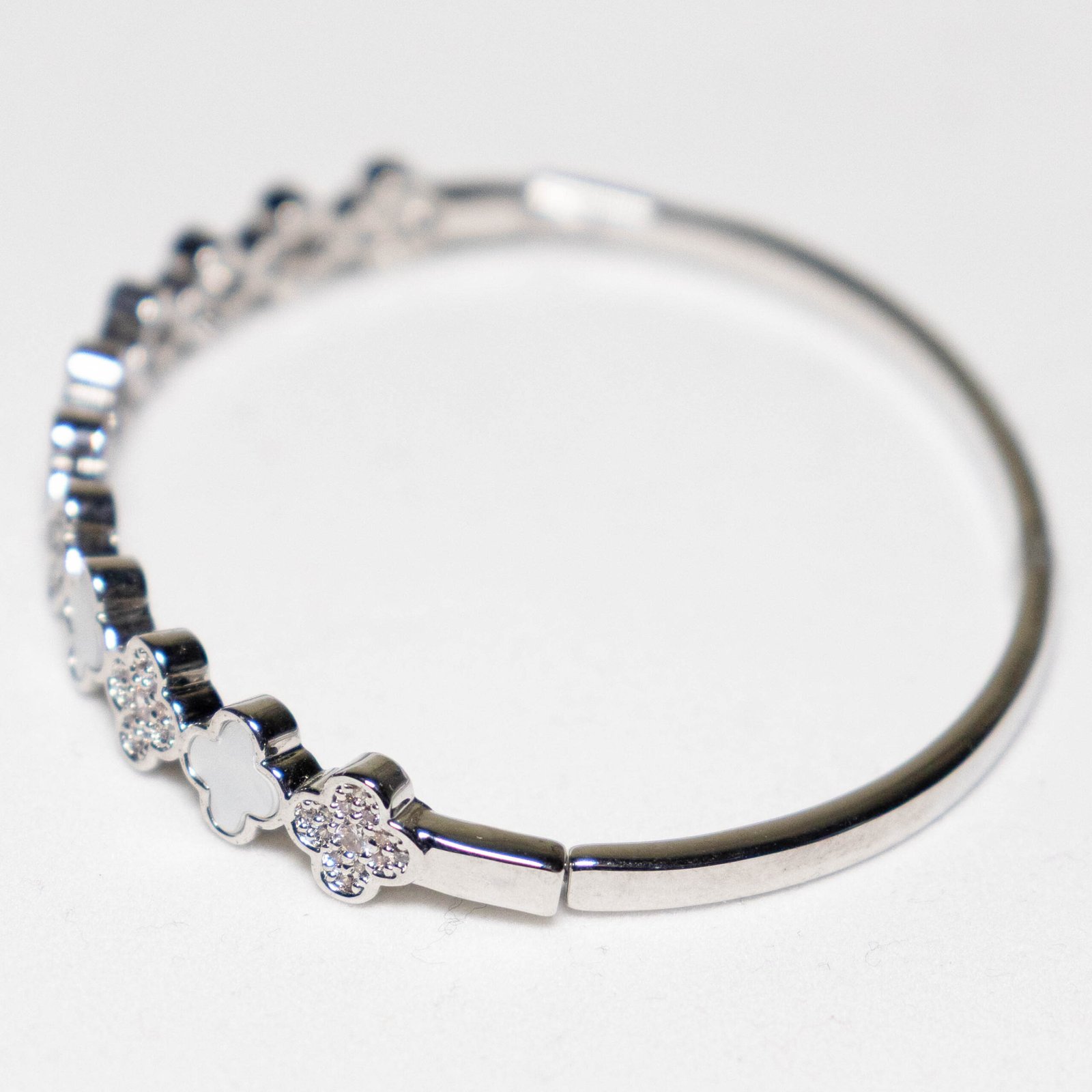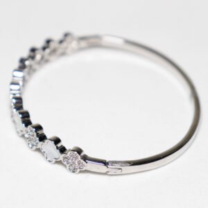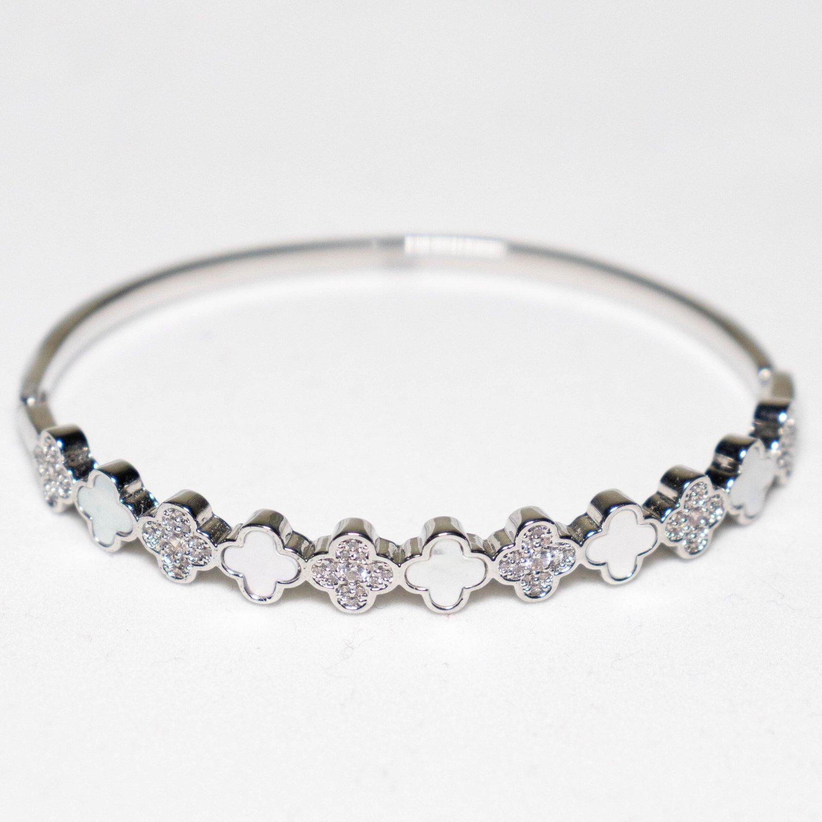 Sedefli & Zirkon Taşlı Gümüş Renk Kaplama Çelik Kelepçe Bileklik