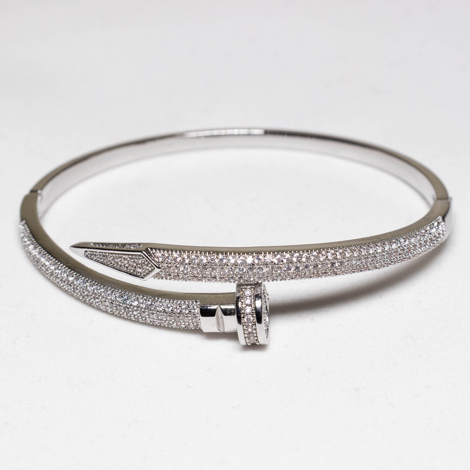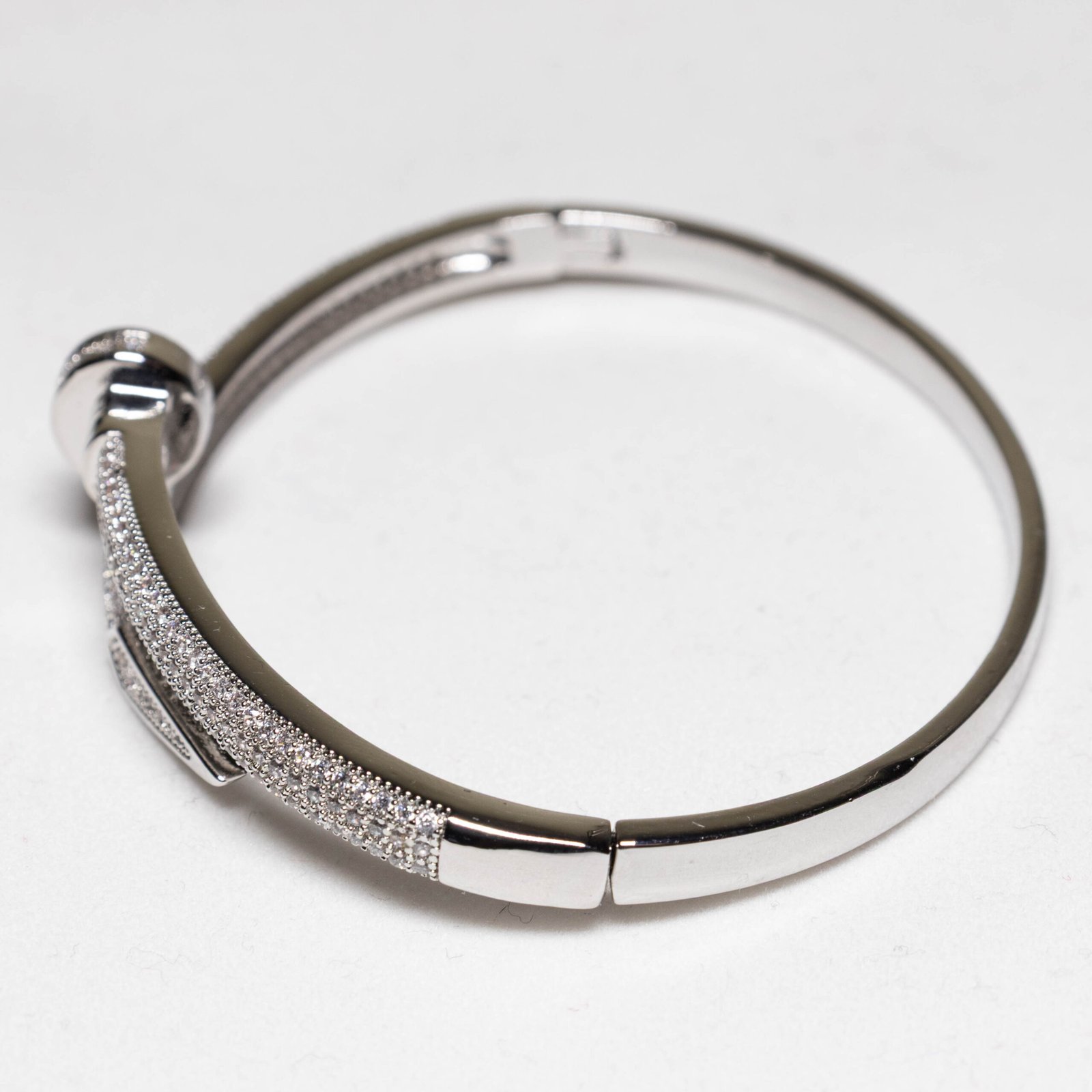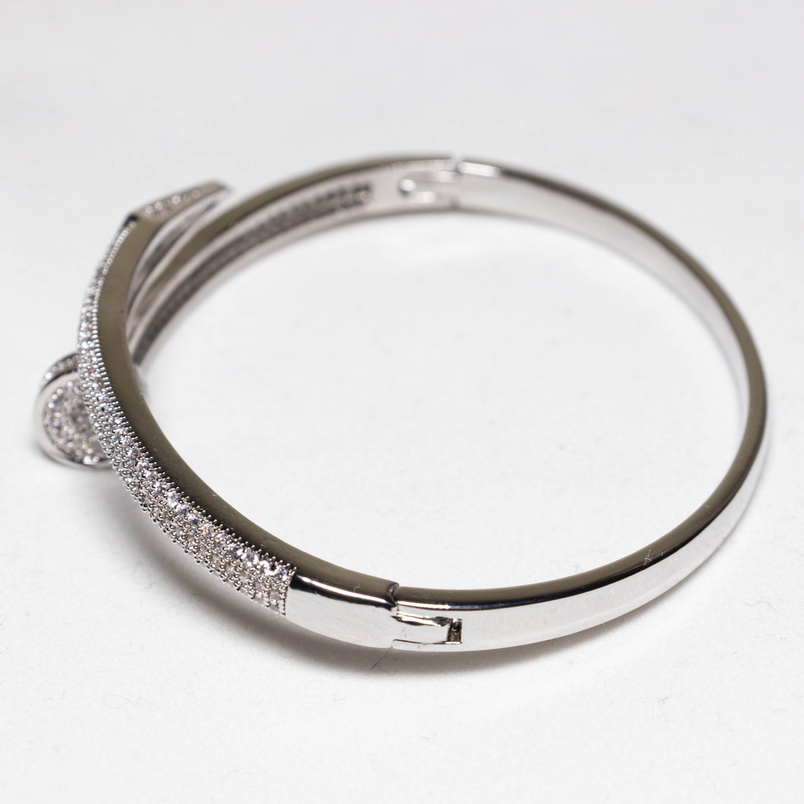 Zirkon Taşlı Gümüş Renk Kaplama Çelik Kelepçe Bileklik